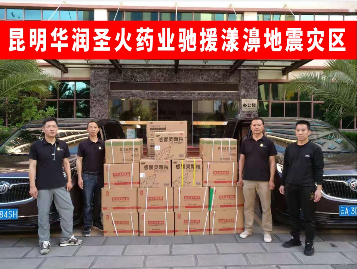 22日,华润圣火药业筹集并采购到灾区急需的伤风药、肠胃药、皮肤药等常用药品,消杀用品,口罩等物资,共计价值10.1万元,并于23日送抵云南省大理州漾濞县中医医院。