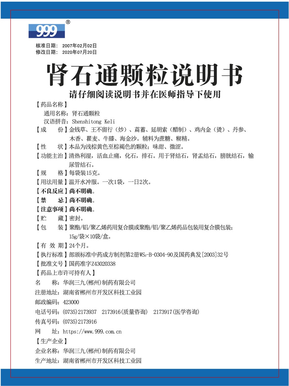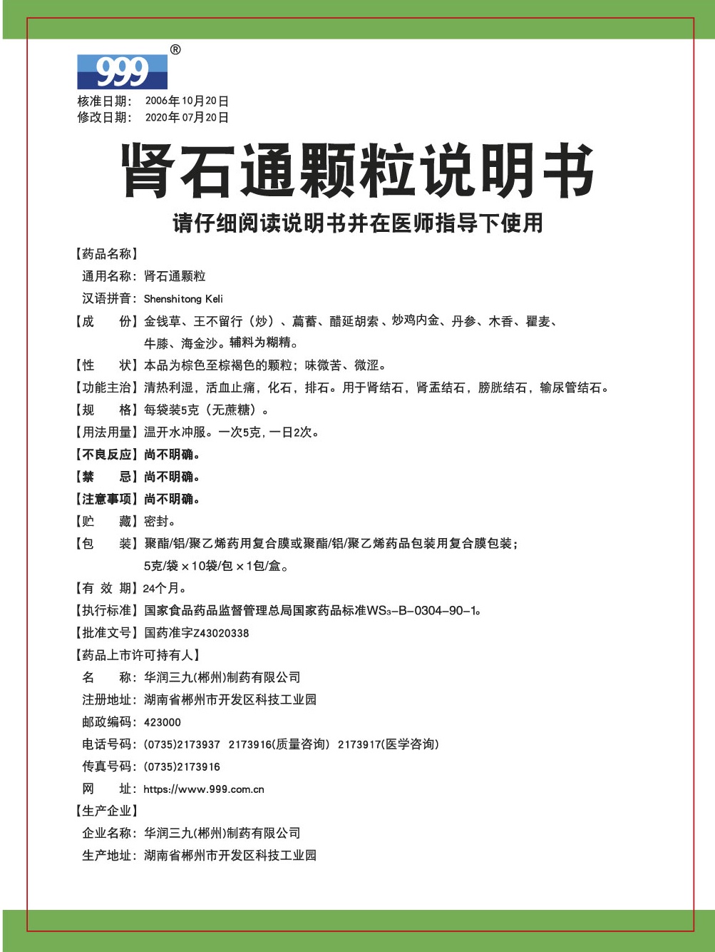 - 以上说明书为国家药品监视管理局批准的最新版本。