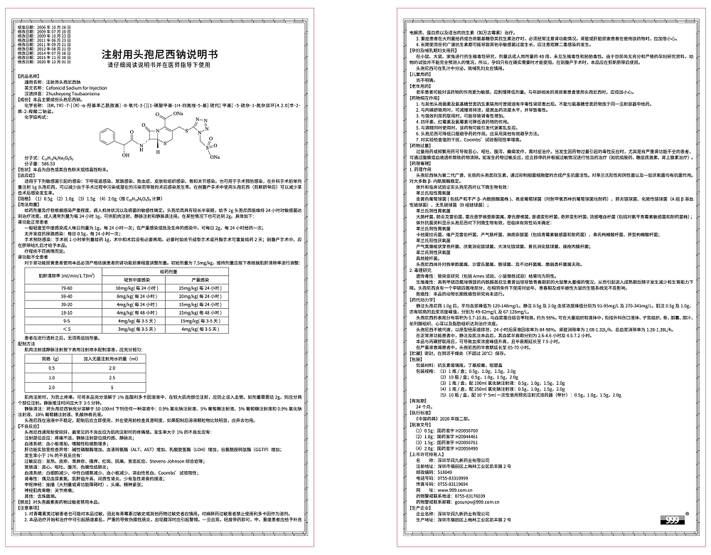 以上说明书为国家药品监视管理局批准的最新版本。